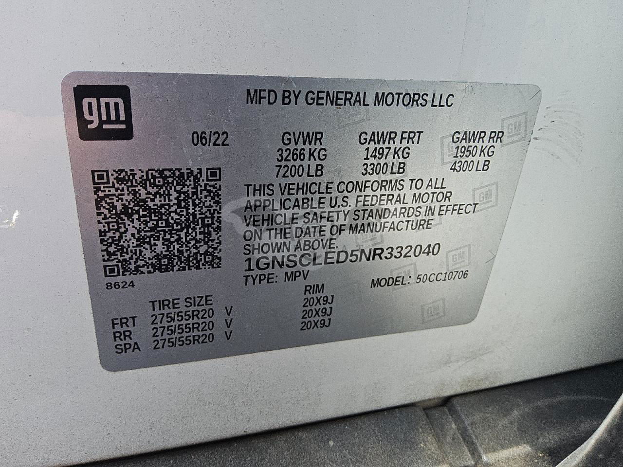 • VIN: 1GNSCLED5NR332040