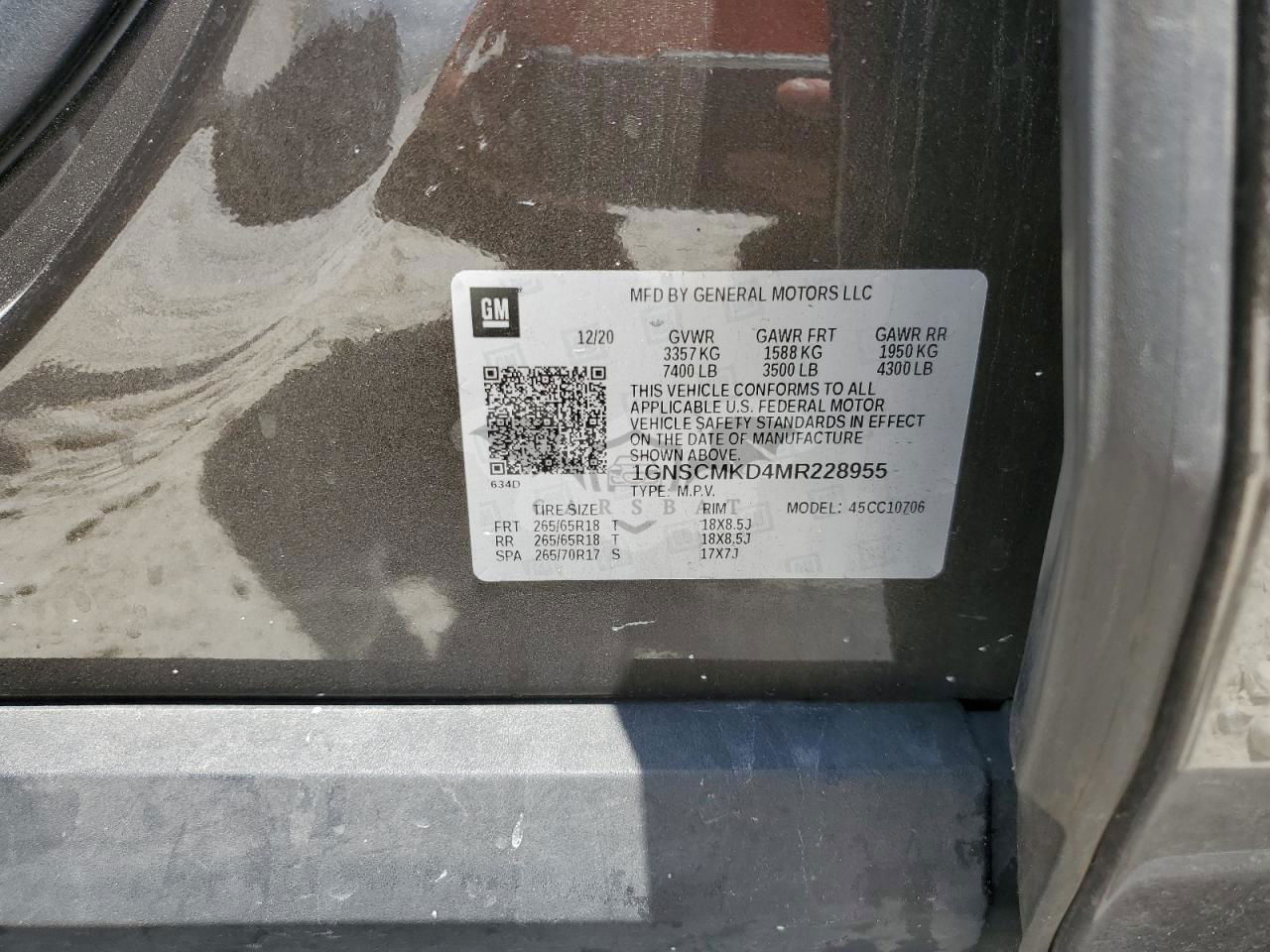 • VIN: 1GNSCMKD4MR228955