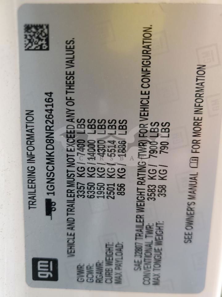 • VIN: 1GNSCMKD8NR264164