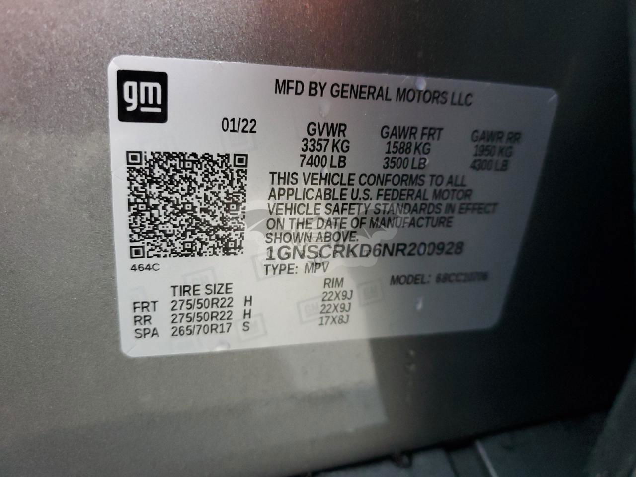 • VIN: 1GNSCRKD6NR200928