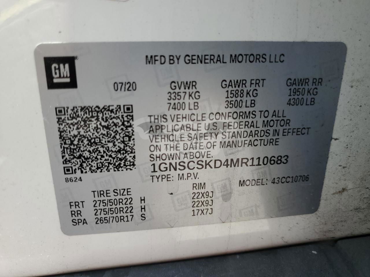 • VIN: 1GNSCSKD4MR110683