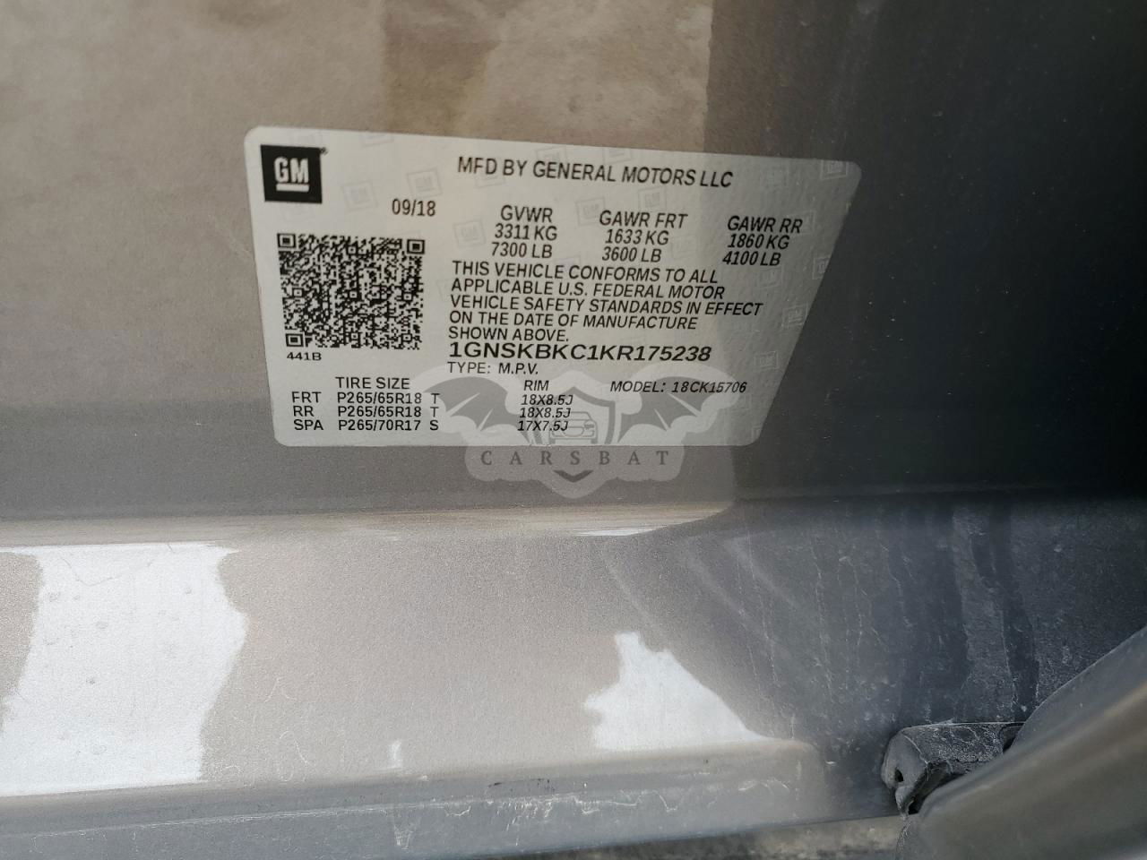 • VIN: 1GNSKBKC1KR175238