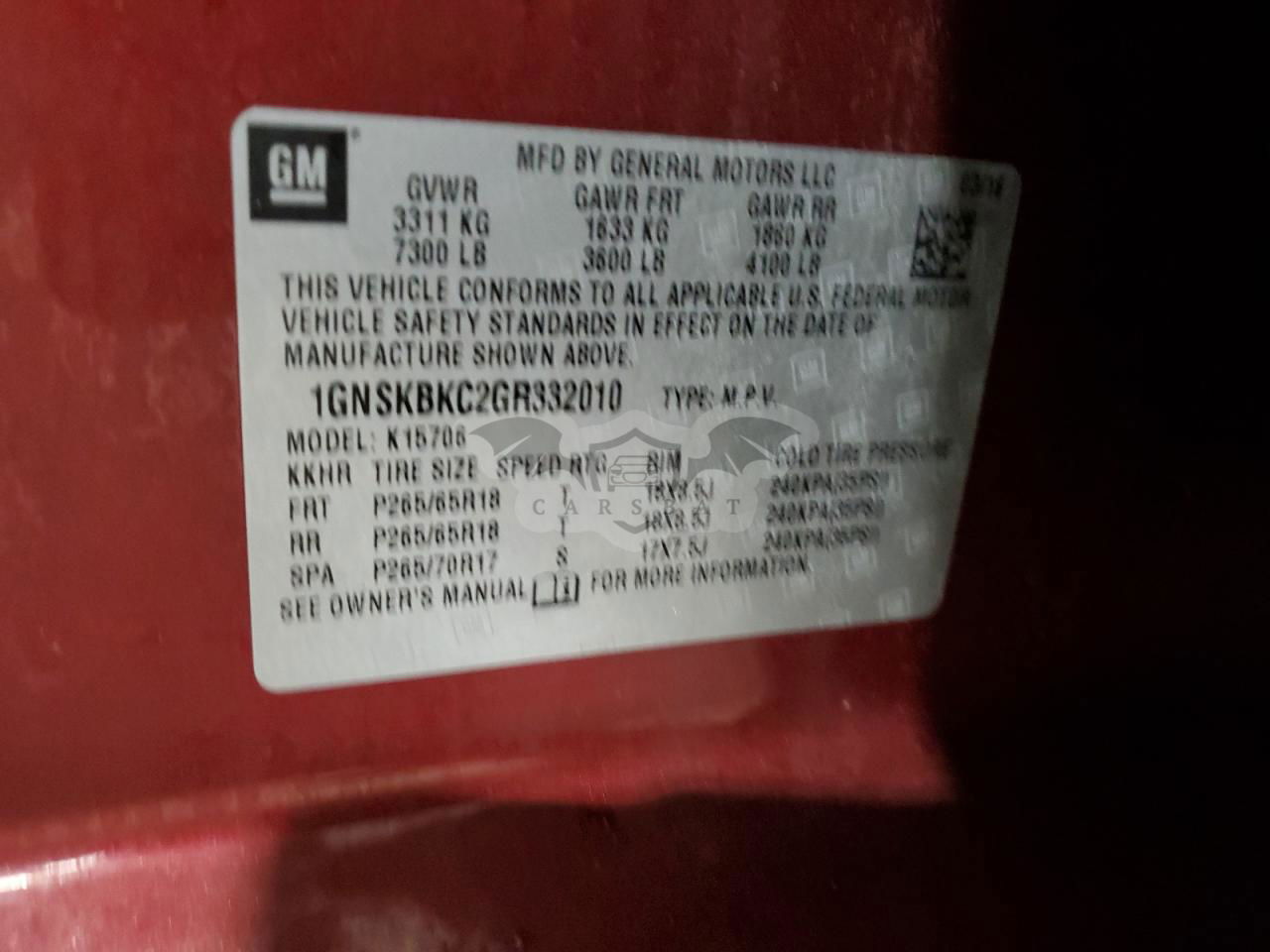 • VIN: 1GNSKBKC2GR332010