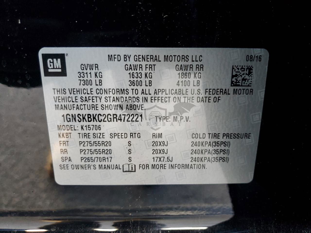 • VIN: 1GNSKBKC2GR472221