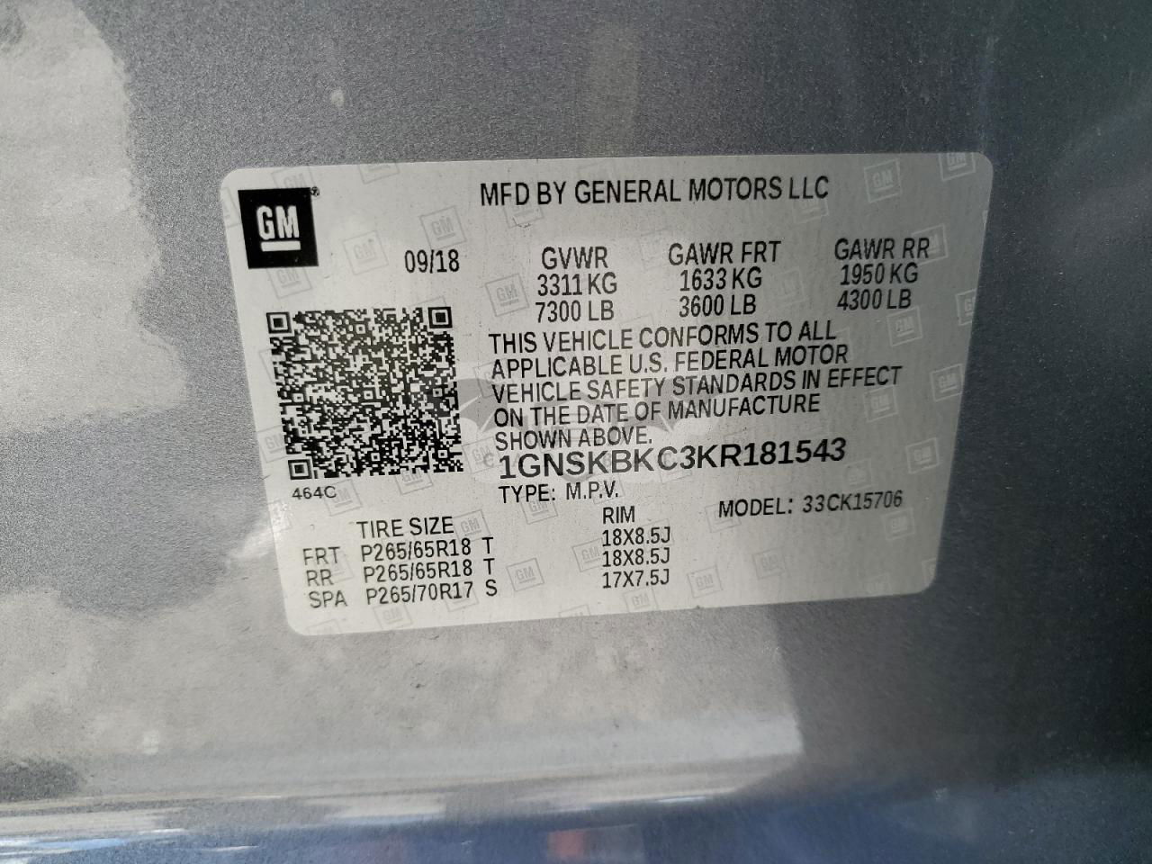 • VIN: 1GNSKBKC3KR181543