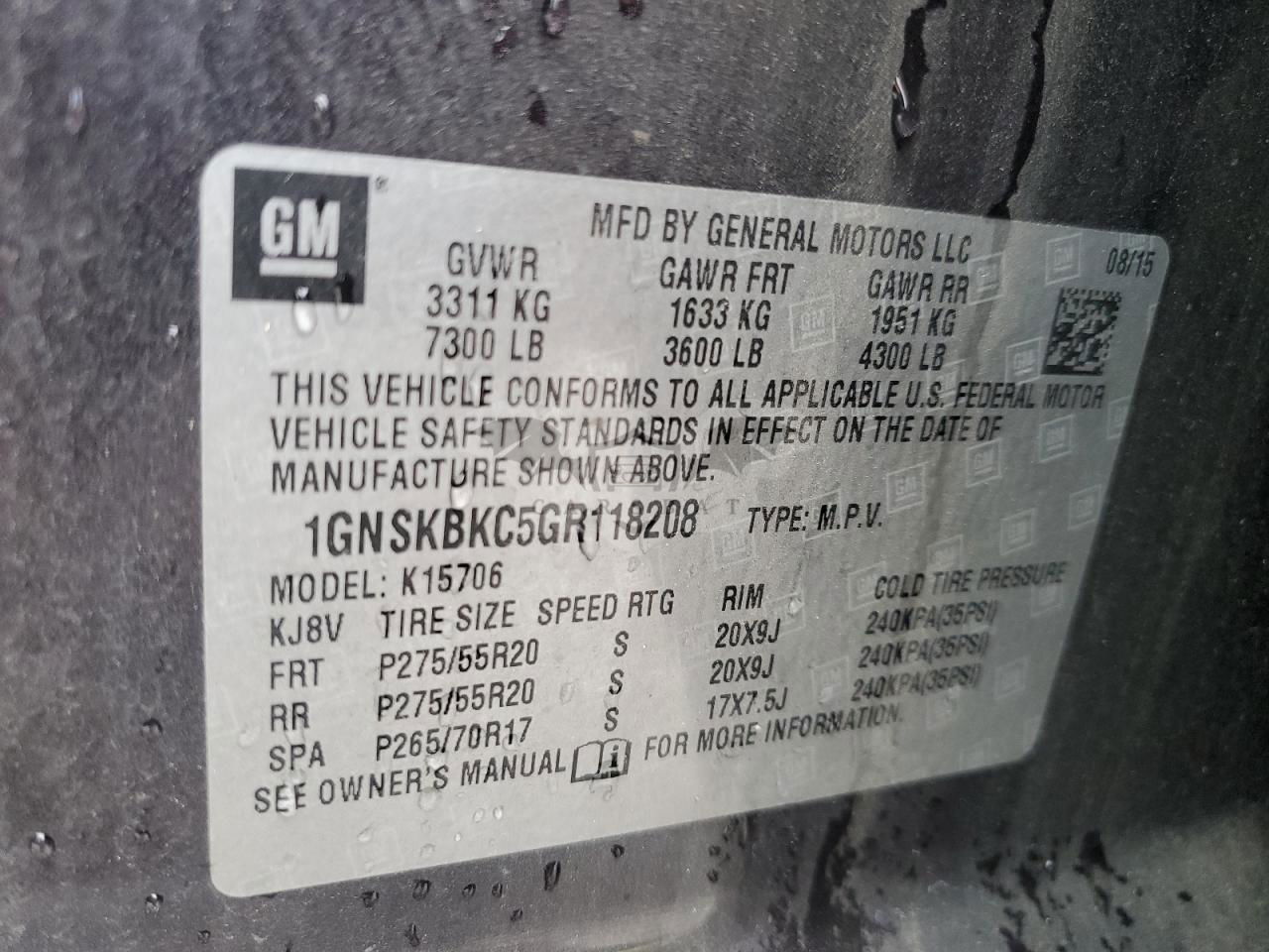 • VIN: 1GNSKBKC5GR118208