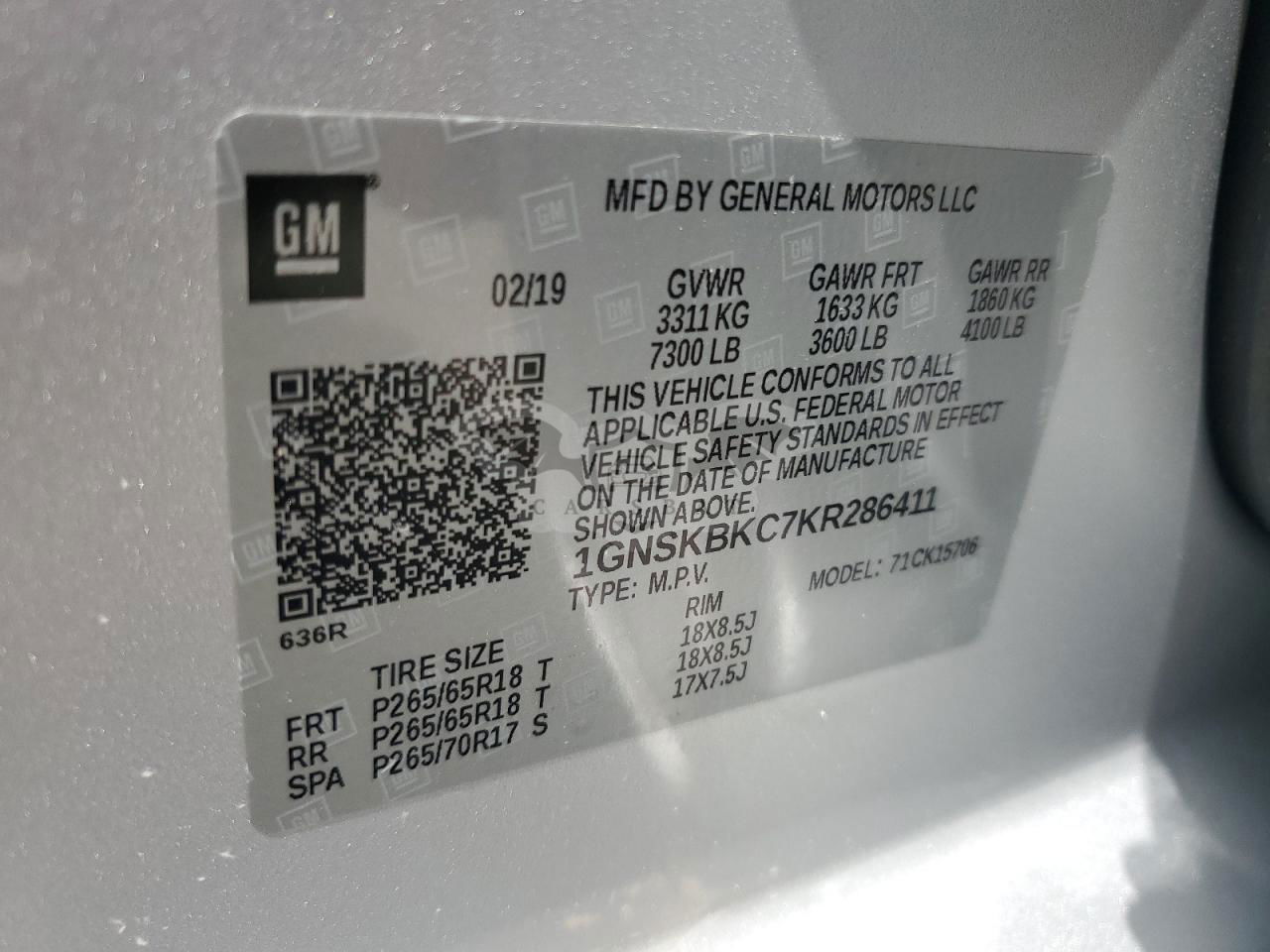 • VIN: 1GNSKBKC7KR286411