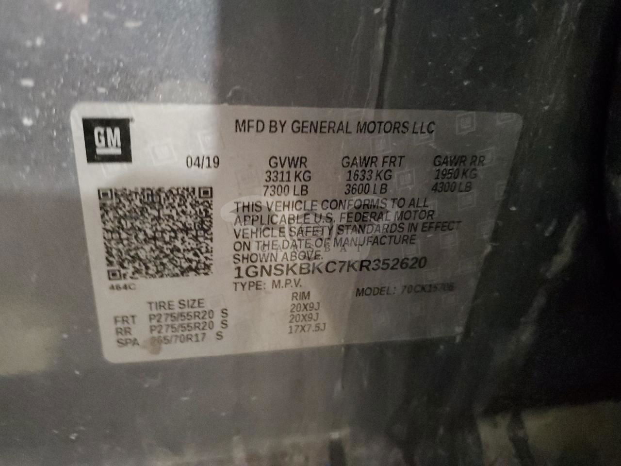 • VIN: 1GNSKBKC7KR352620