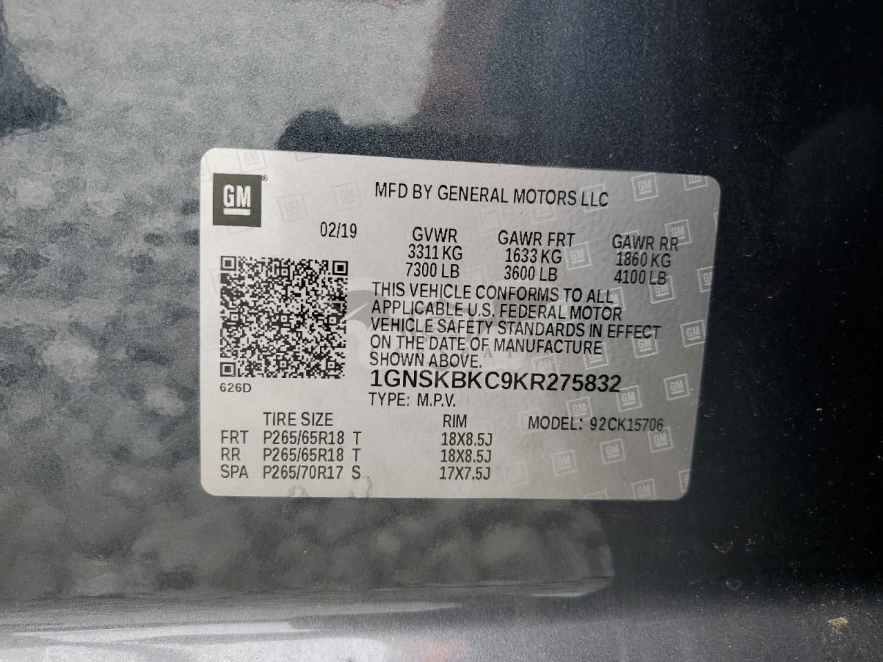 • VIN: 1GNSKBKC9KR275832