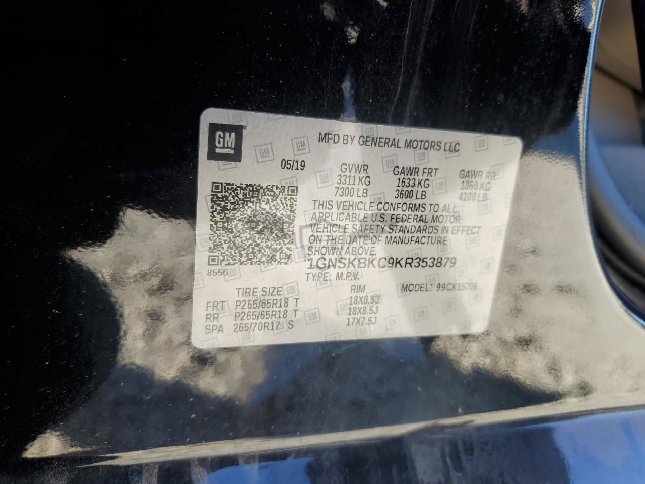 • VIN: 1GNSKBKC9KR353879