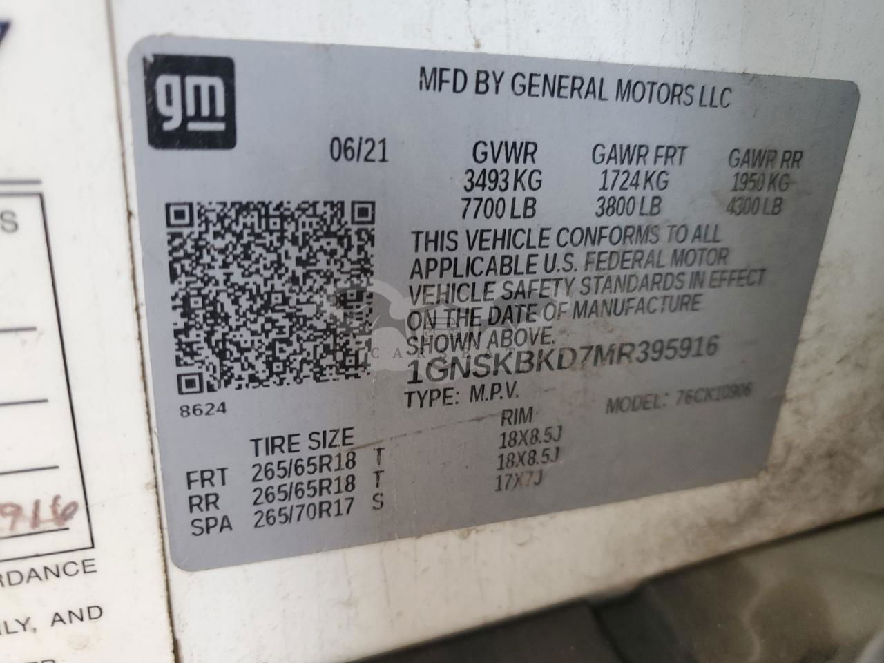 • VIN: 1GNSKBKD7MR395916