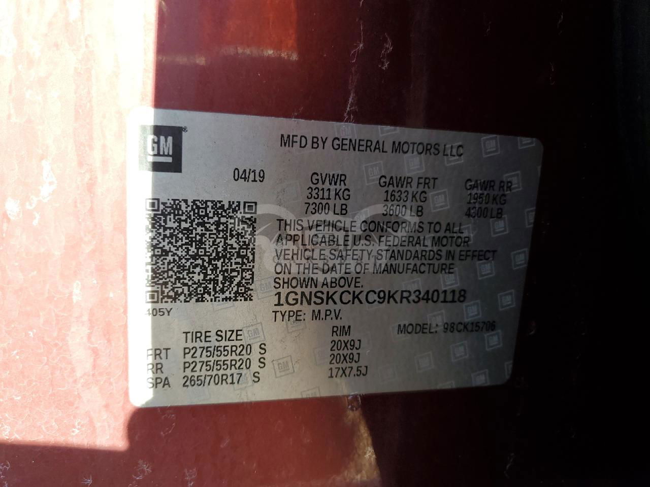 1GNSKCKC9KR340118