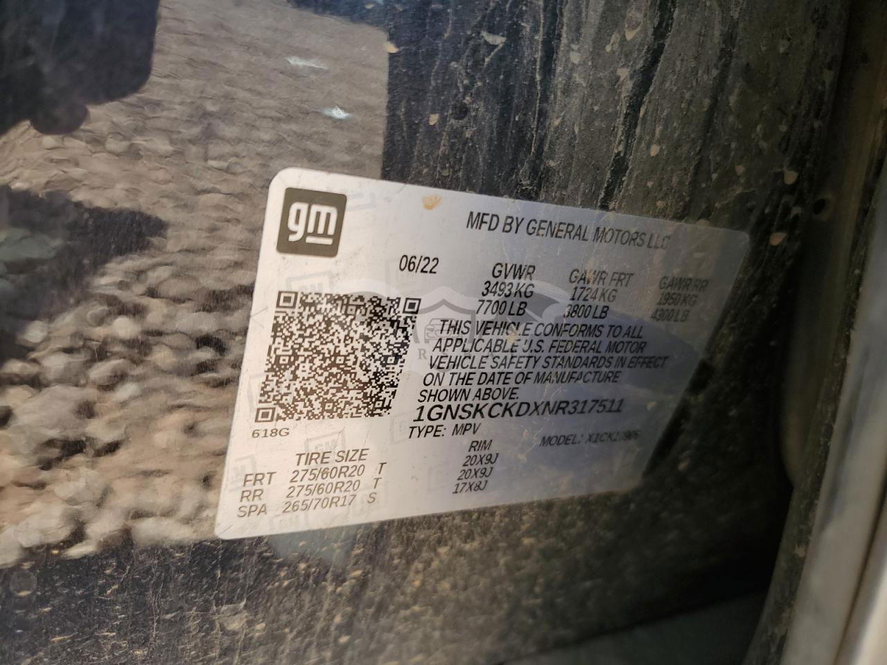 • VIN: 1GNSKCKDXNR317511