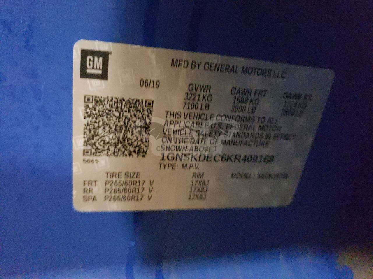 • VIN: 1GNSKDEC6KR409168