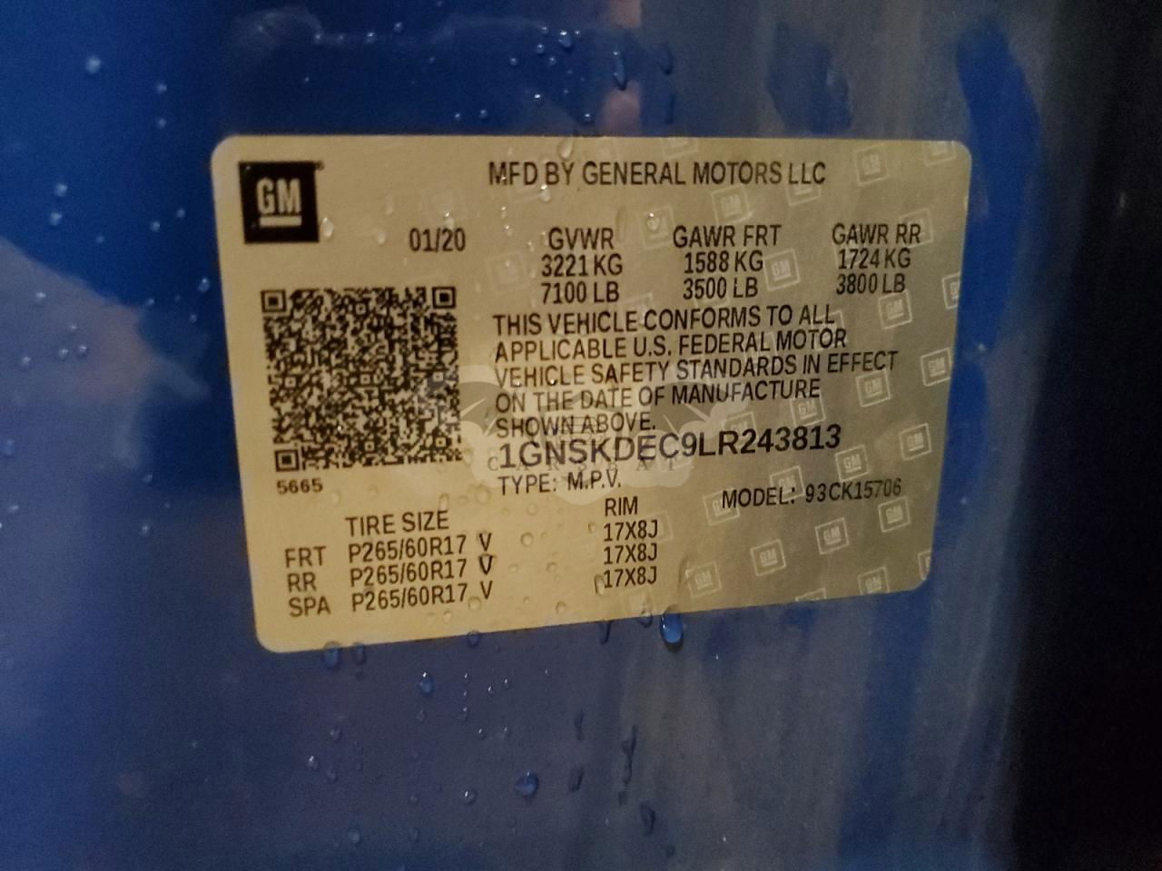 • VIN: 1GNSKDEC9LR243813