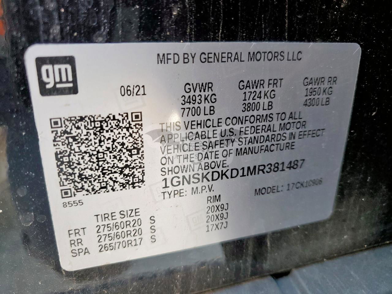 • VIN: 1GNSKDKD1MR381487