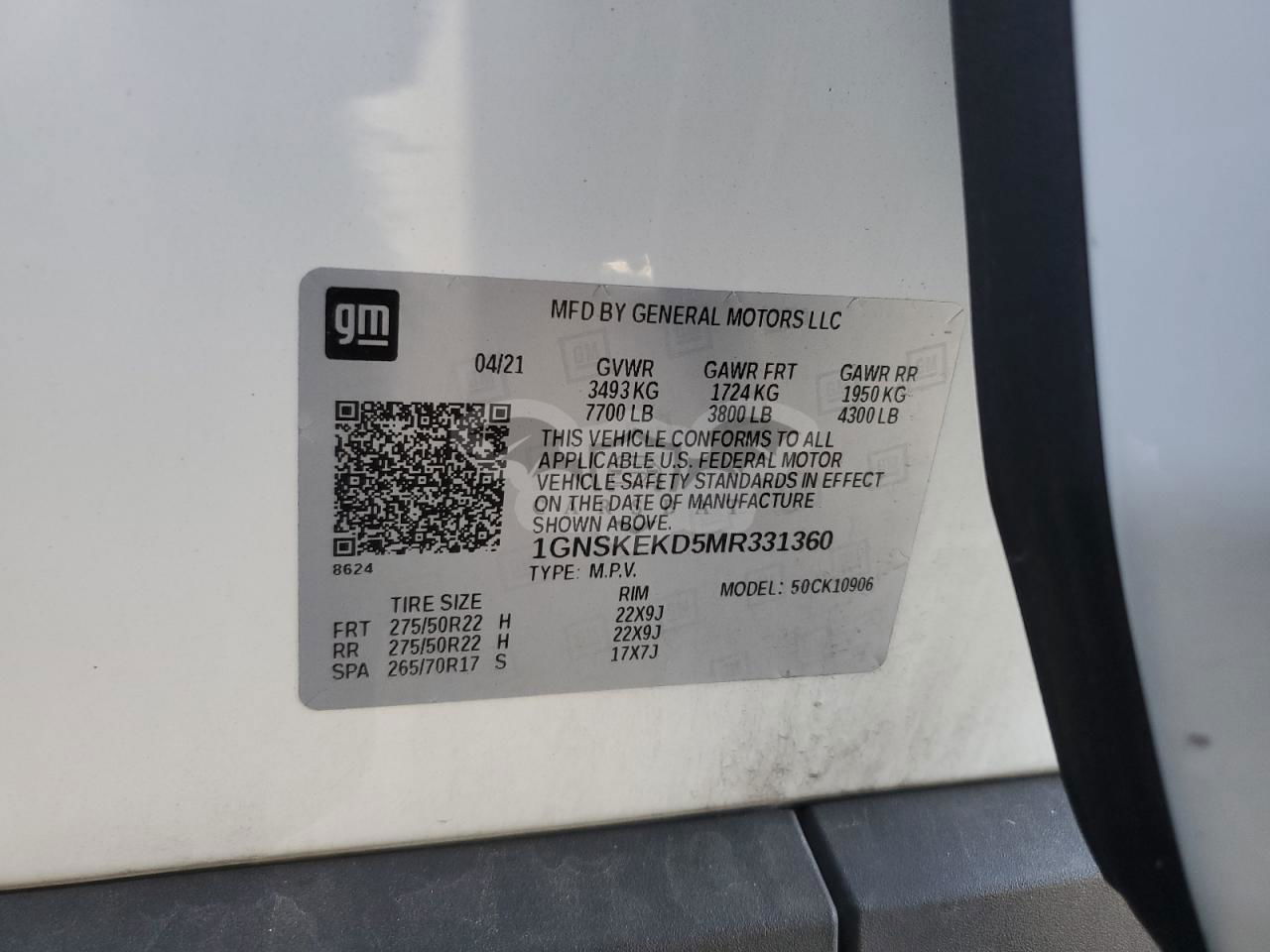 • VIN: 1GNSKEKD5MR331360