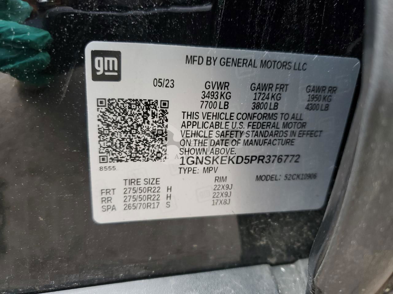 • VIN: 1GNSKEKD5PR376772