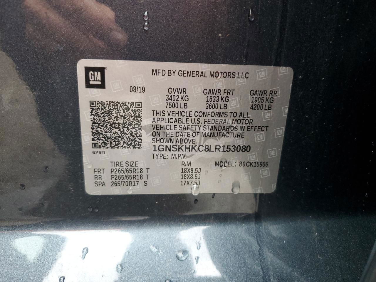 • VIN: 1GNSKHKC8LR153080