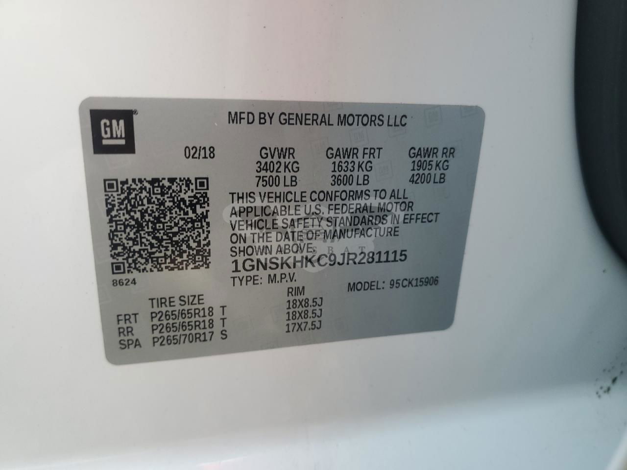 • VIN: 1GNSKHKC9JR281115