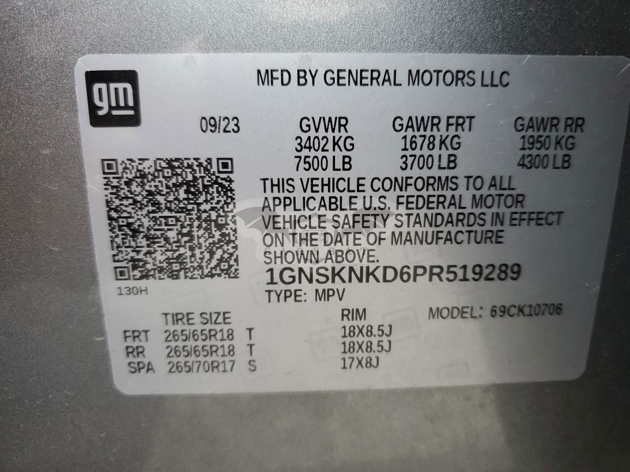 • VIN: 1GNSKNKD6PR519289