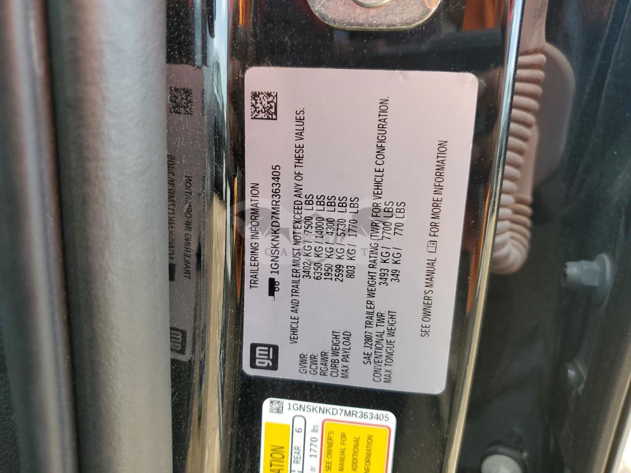 • VIN: 1GNSKNKD7MR363405