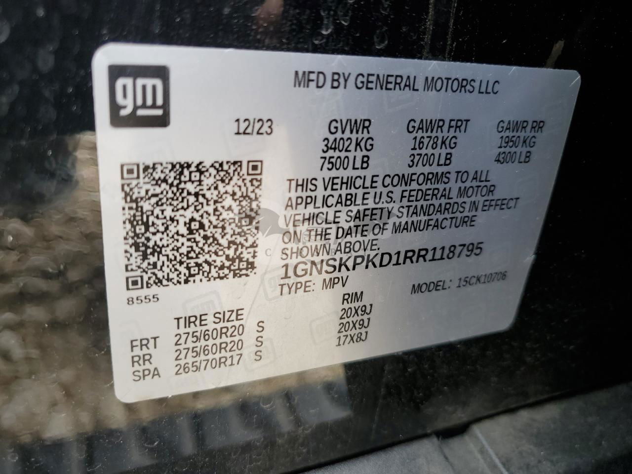 • VIN: 1GNSKPKD1RR118795