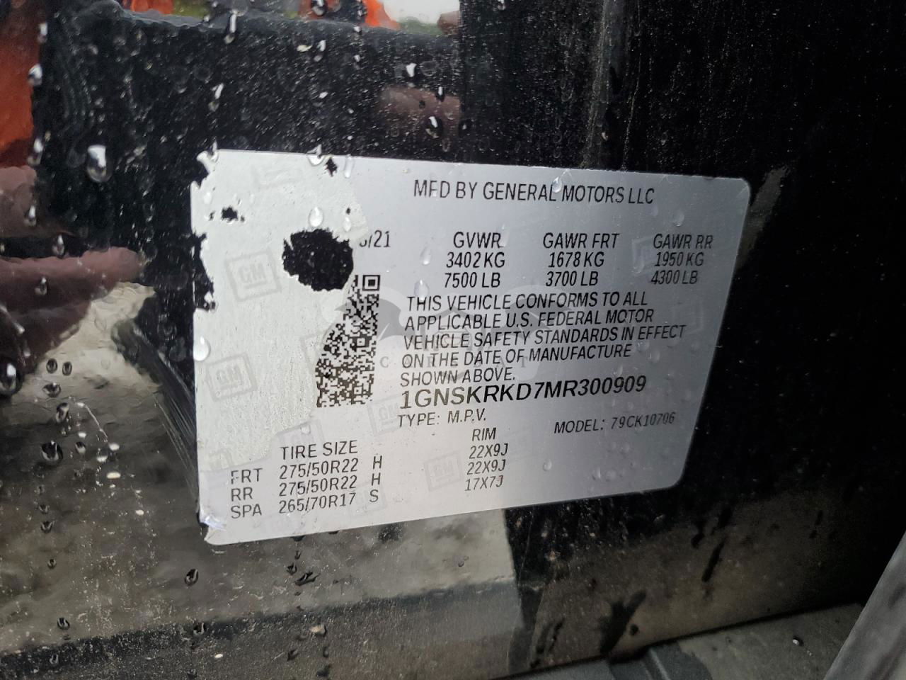 • VIN: 1GNSKRKD7MR300909