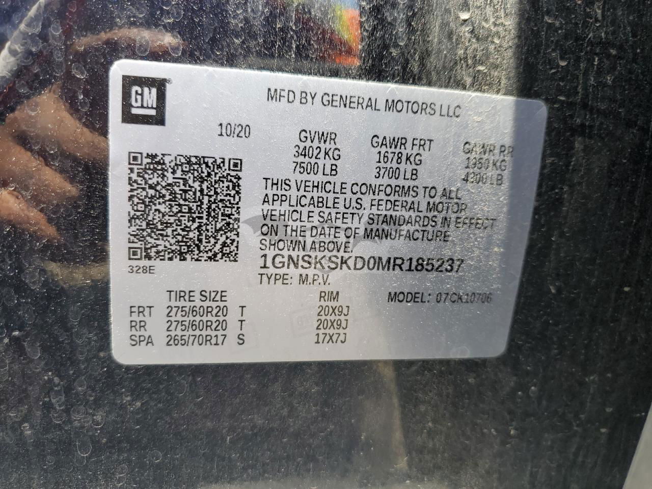 • VIN: 1GNSKSKD0MR185237