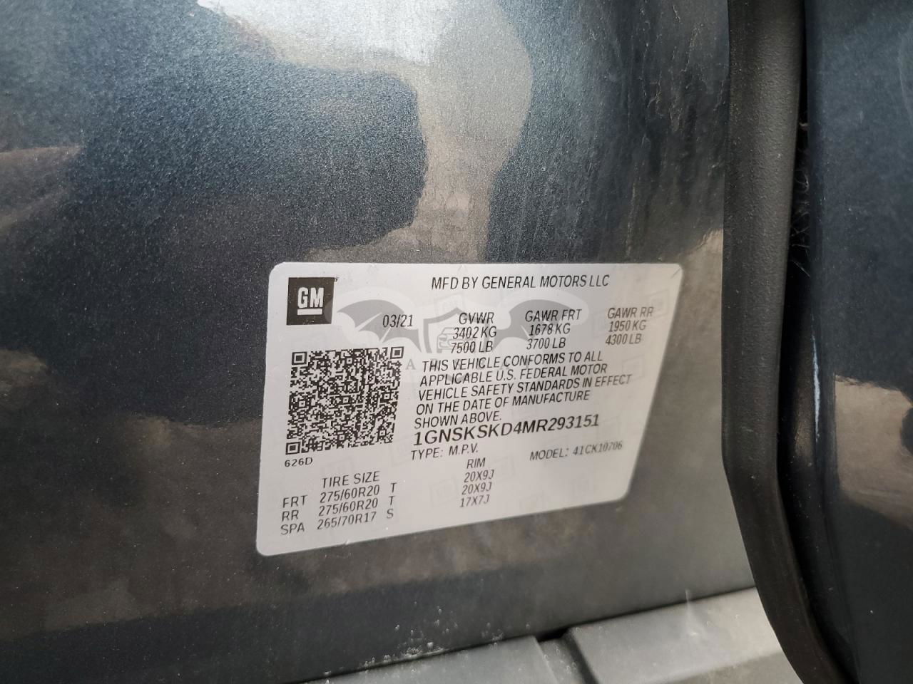 • VIN: 1GNSKSKD4MR293151