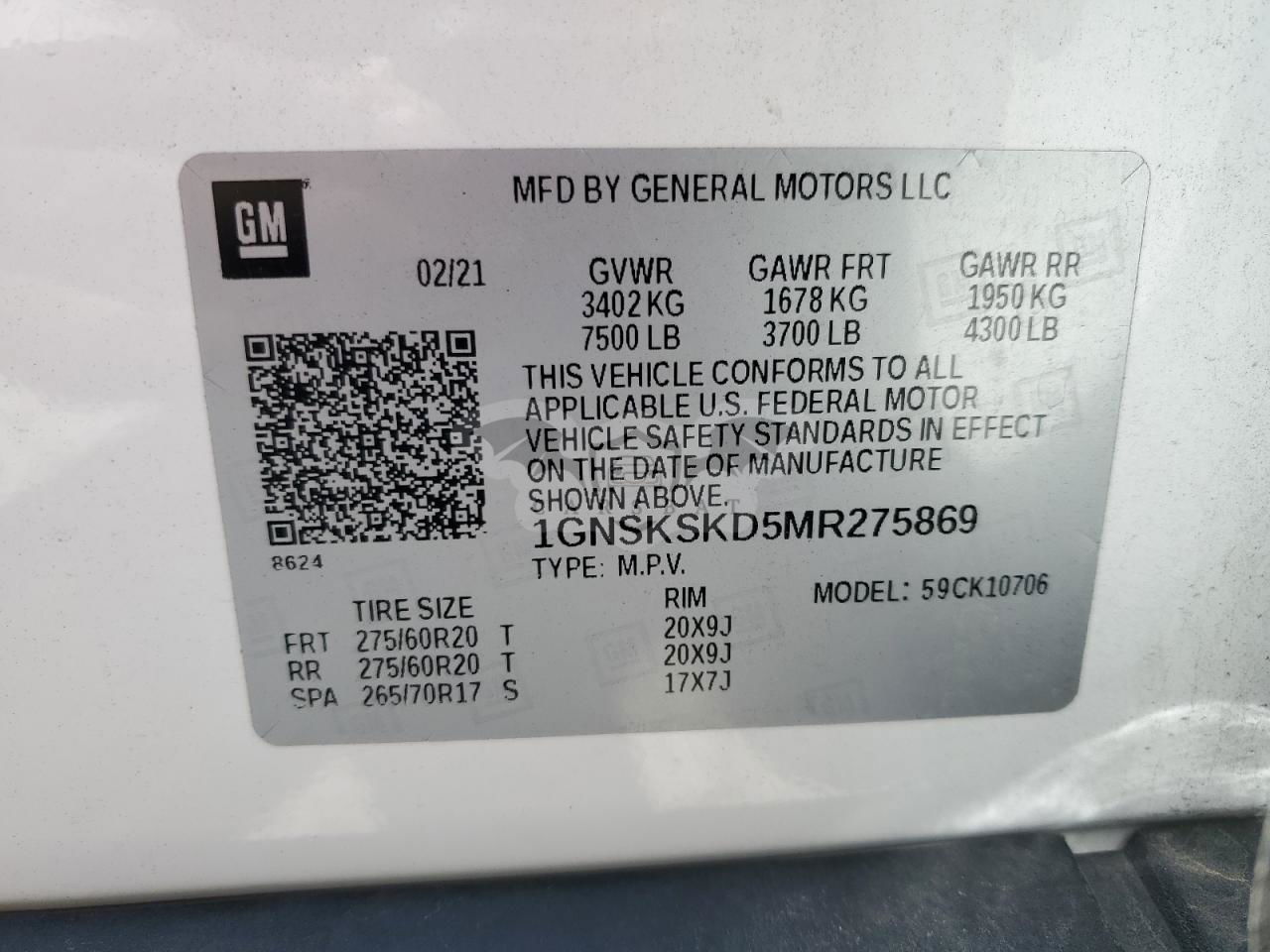 • VIN: 1GNSKSKD5MR275869