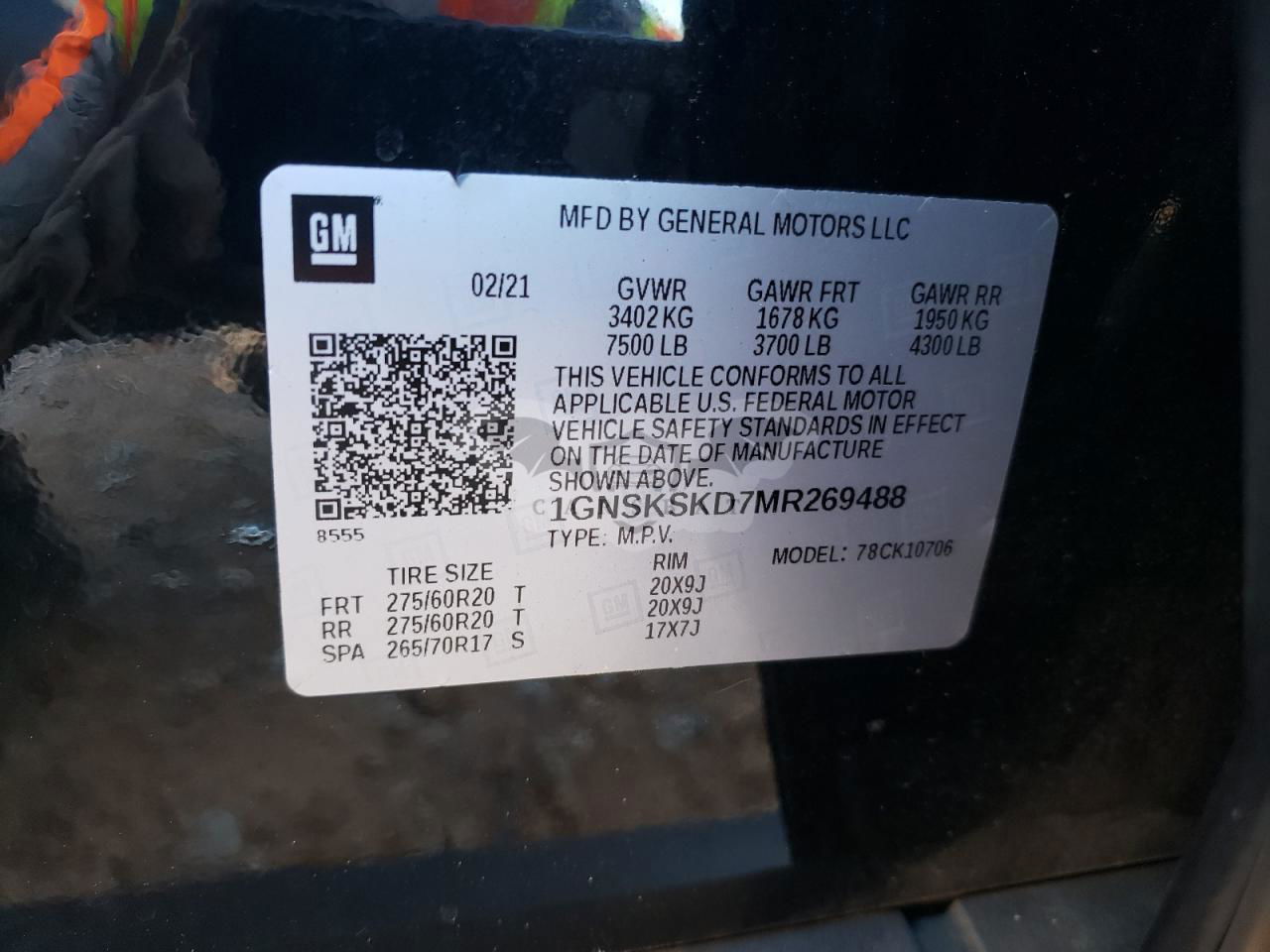 • VIN: 1GNSKSKD7MR269488