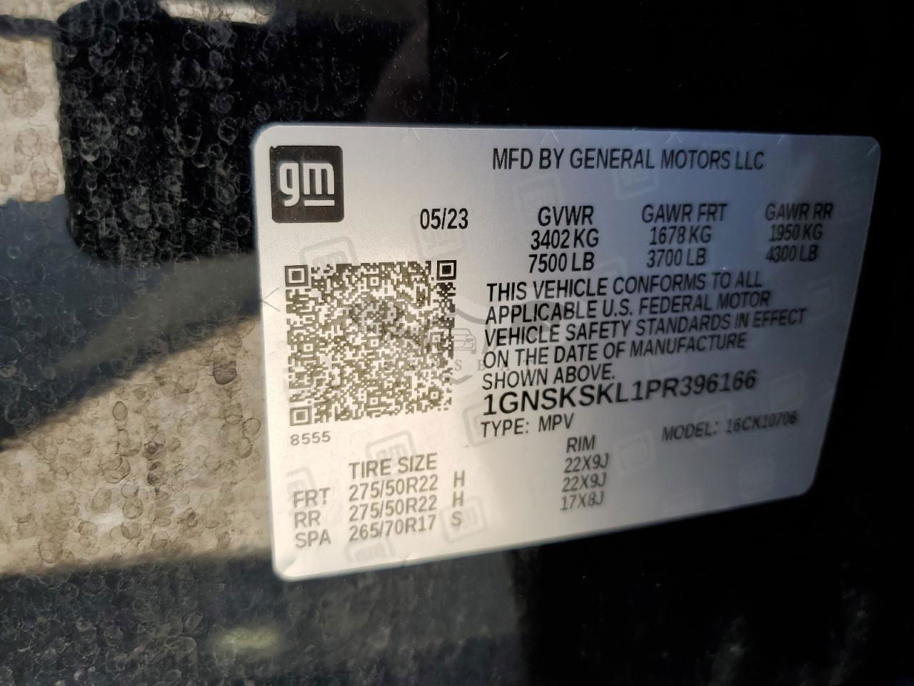 • VIN: 1GNSKSKL1PR396166