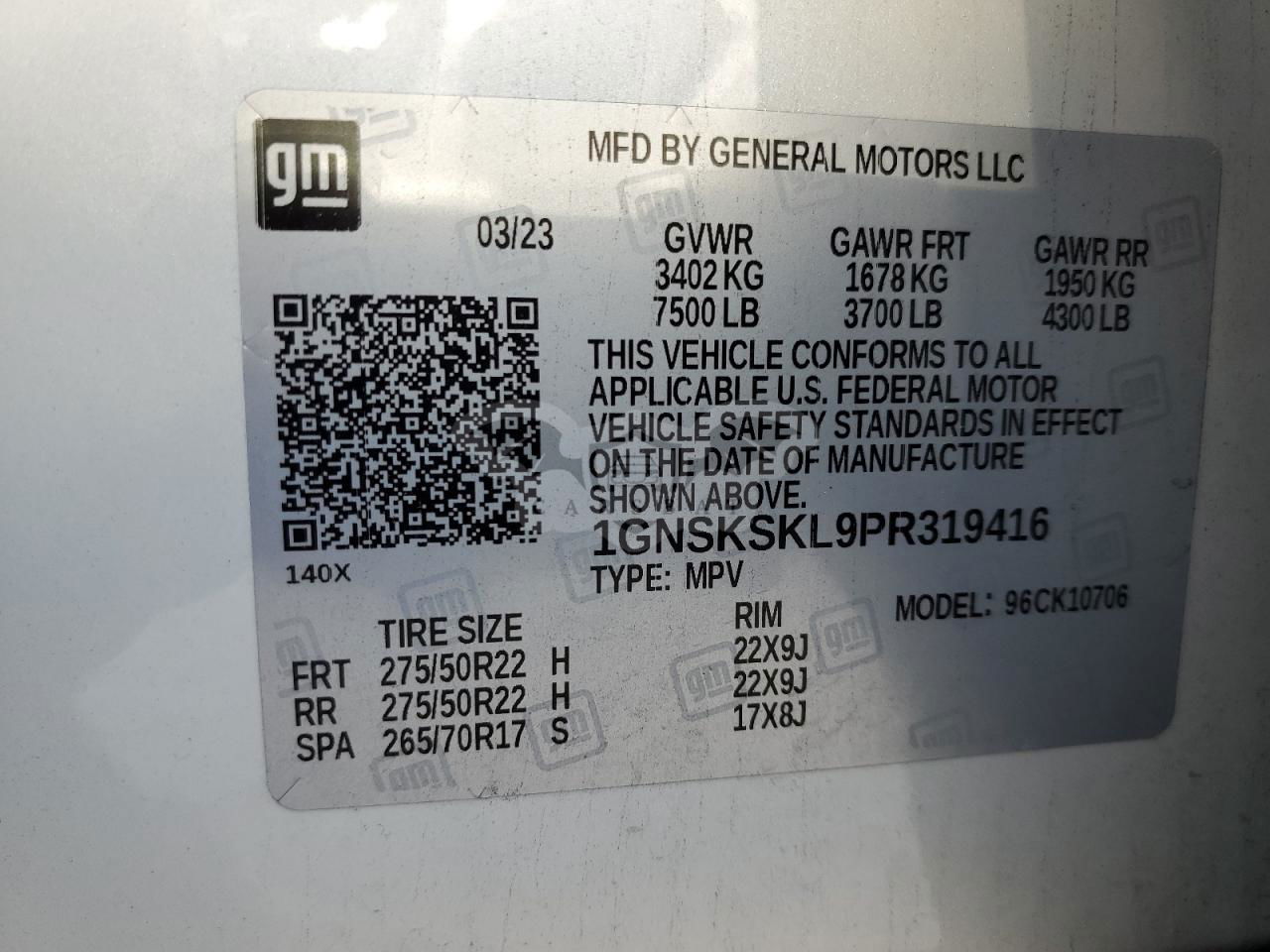 • VIN: 1GNSKSKL9PR319416