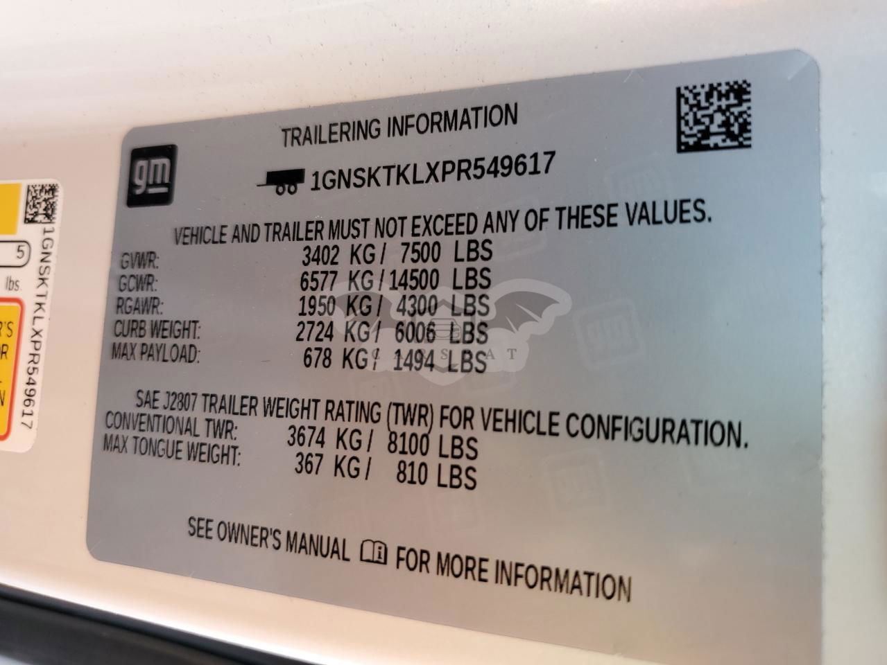• VIN: 1GNSKTKLXPR549617