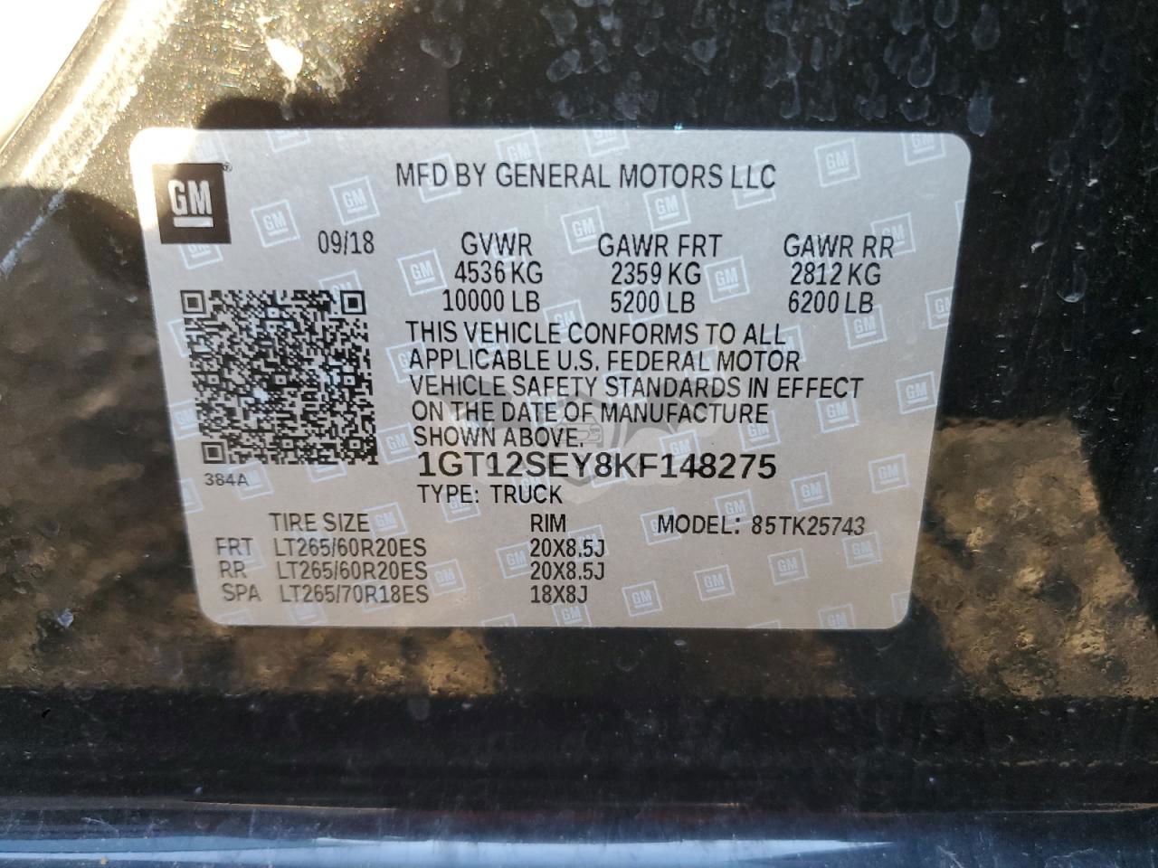• VIN: 1GT12SEY8KF148275