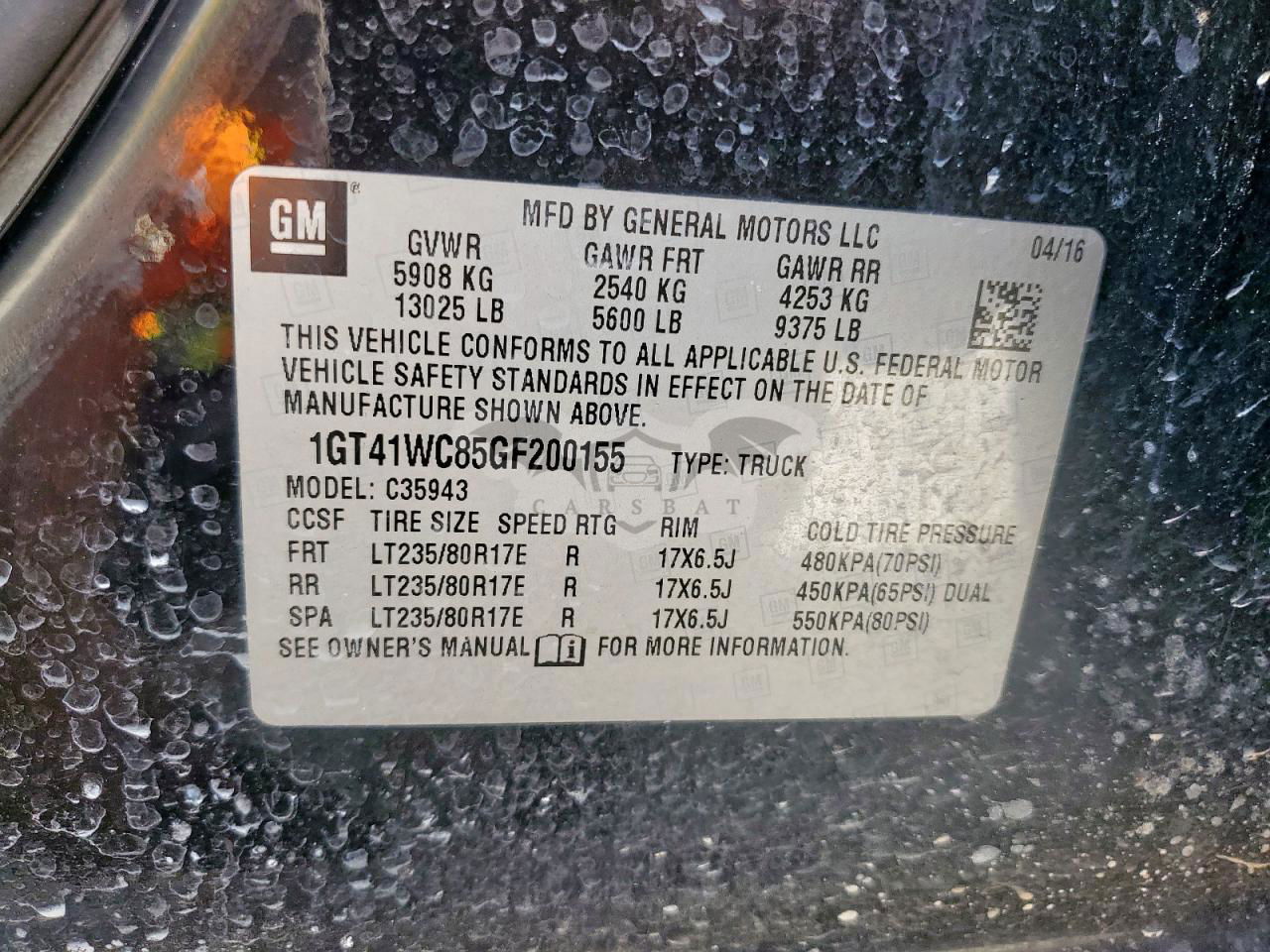 • VIN: 1GT41WC85GF200155