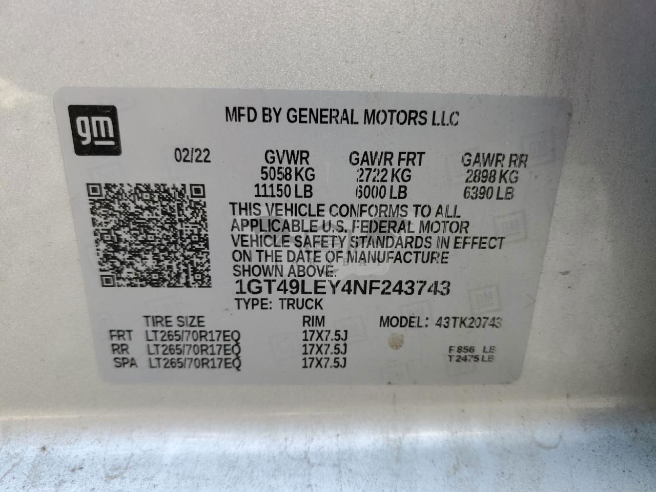• VIN: 1GT49LEY4NF243743