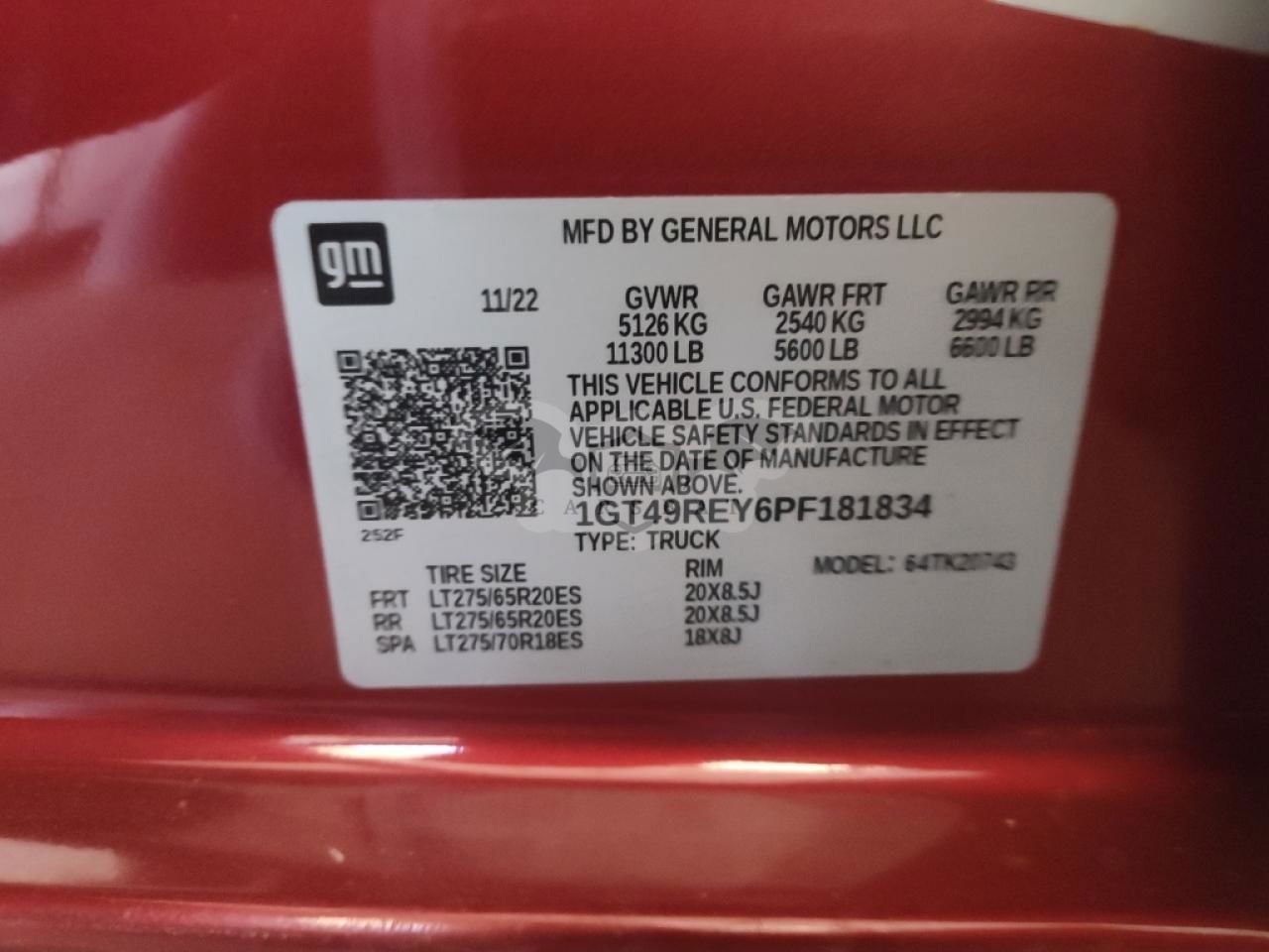 • VIN: 1GT49REY6PF181834