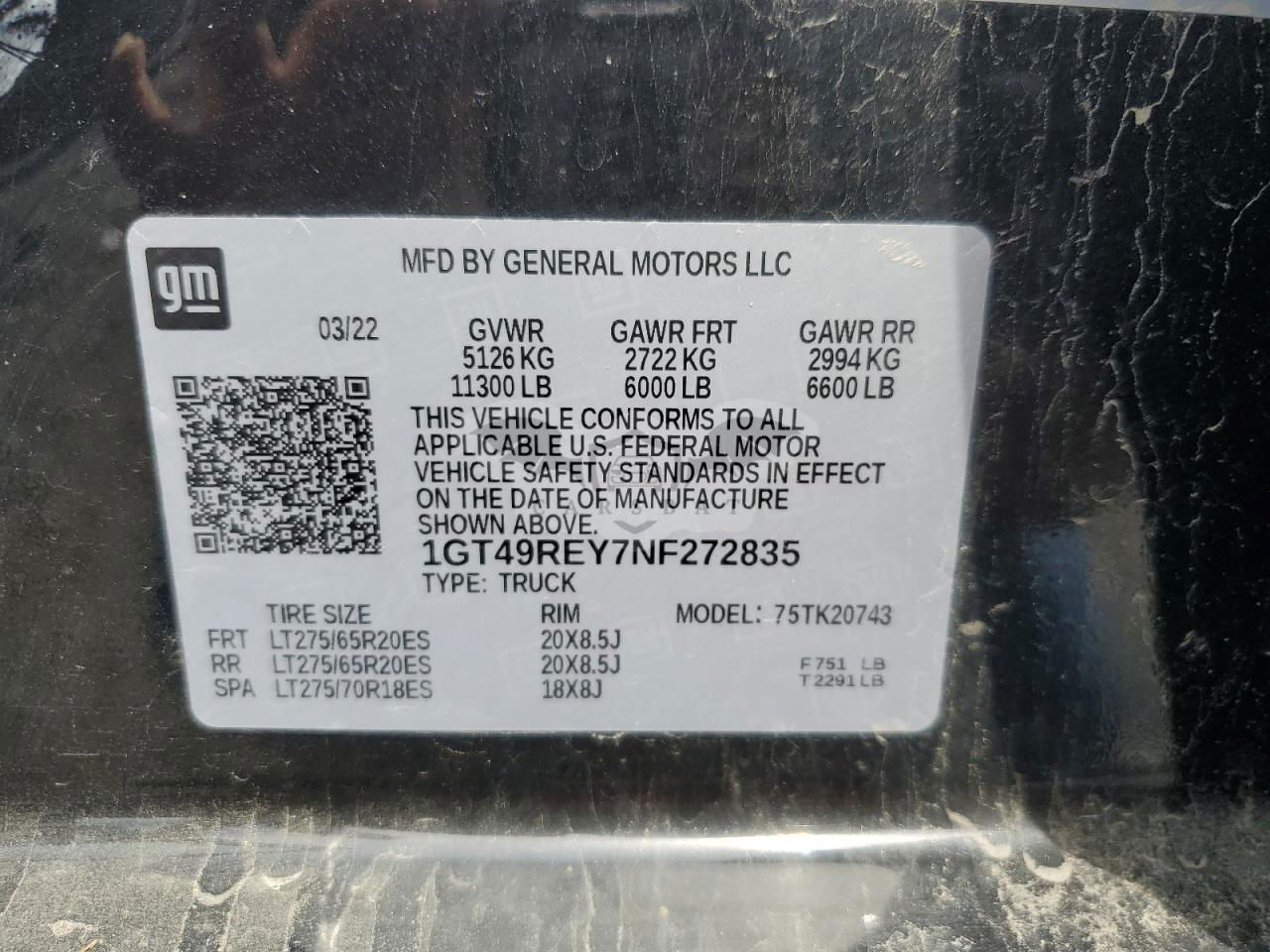 • VIN: 1GT49REY7NF272835