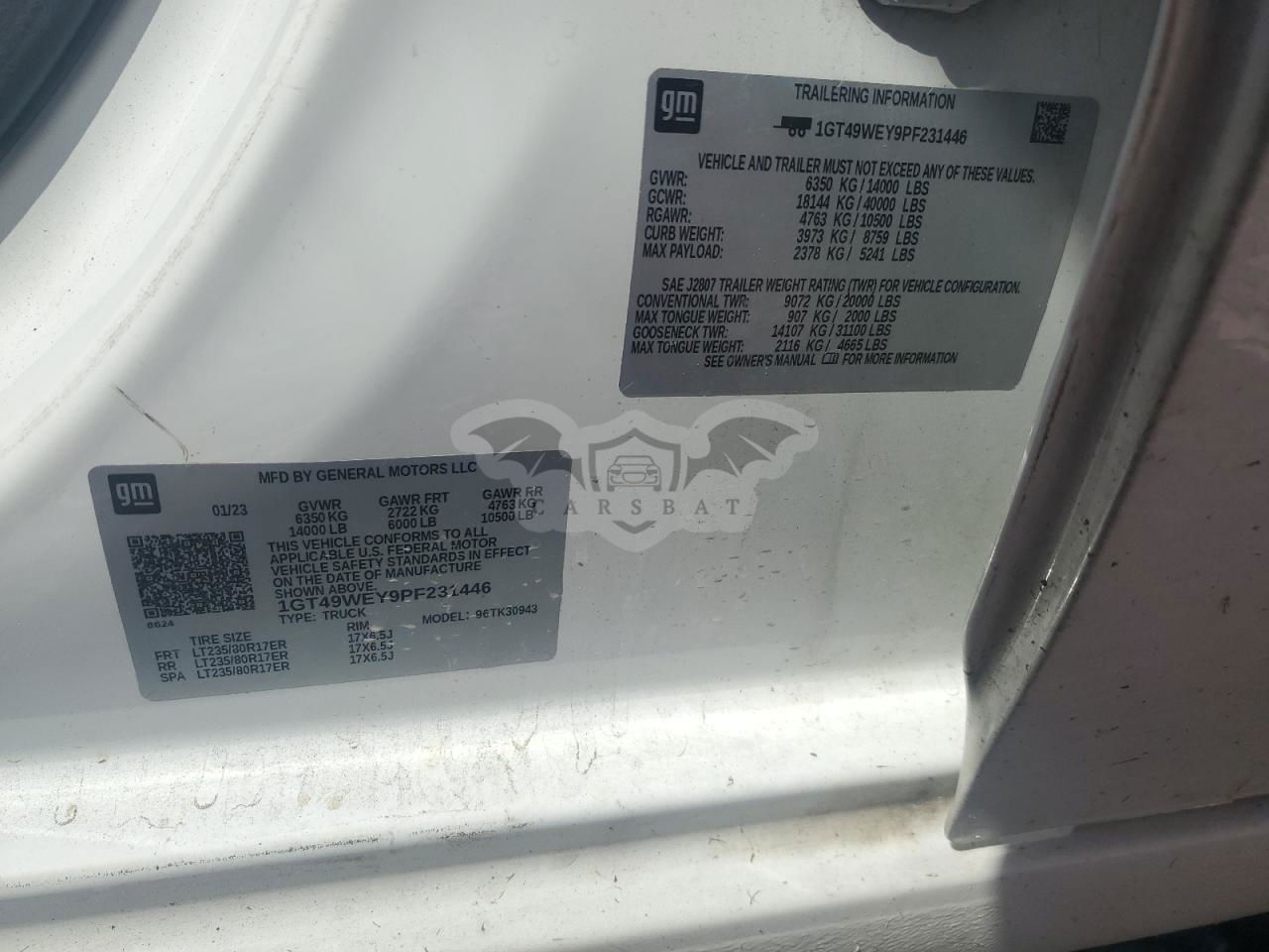 • VIN: 1GT49WEY9PF231446