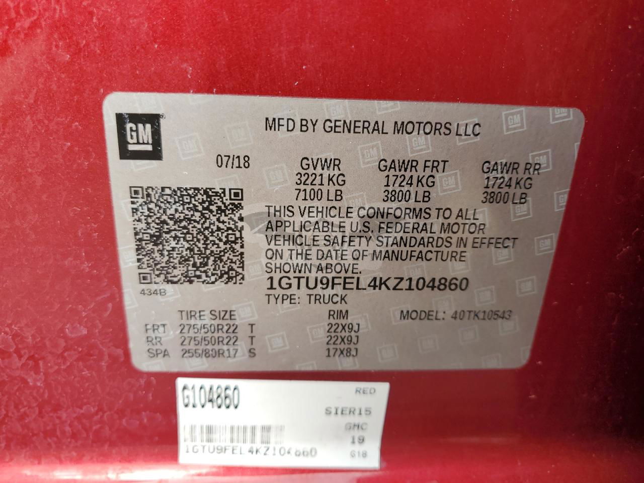 • VIN: 1GTU9FEL4KZ104860