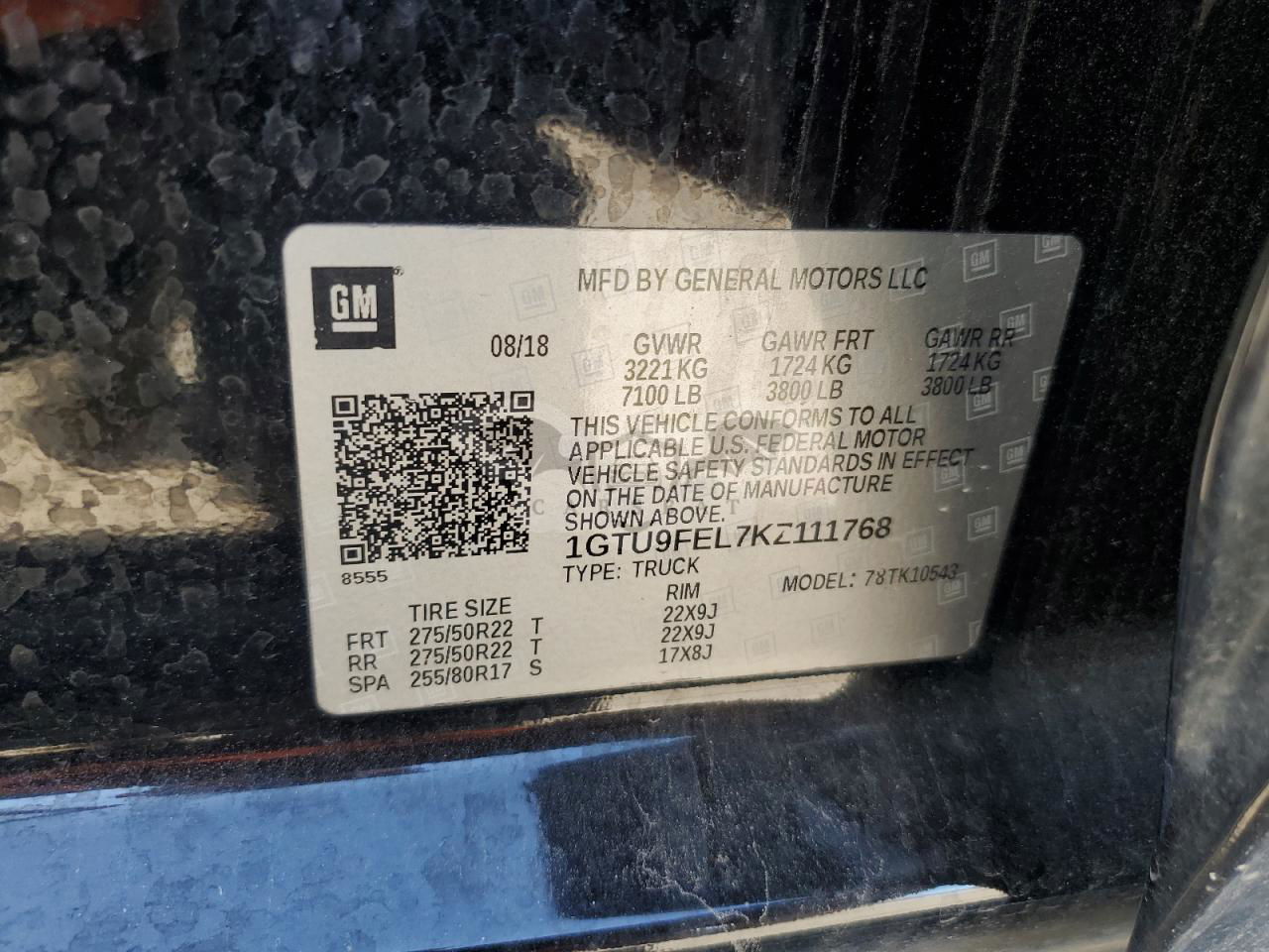 • VIN: 1GTU9FEL7KZ111768