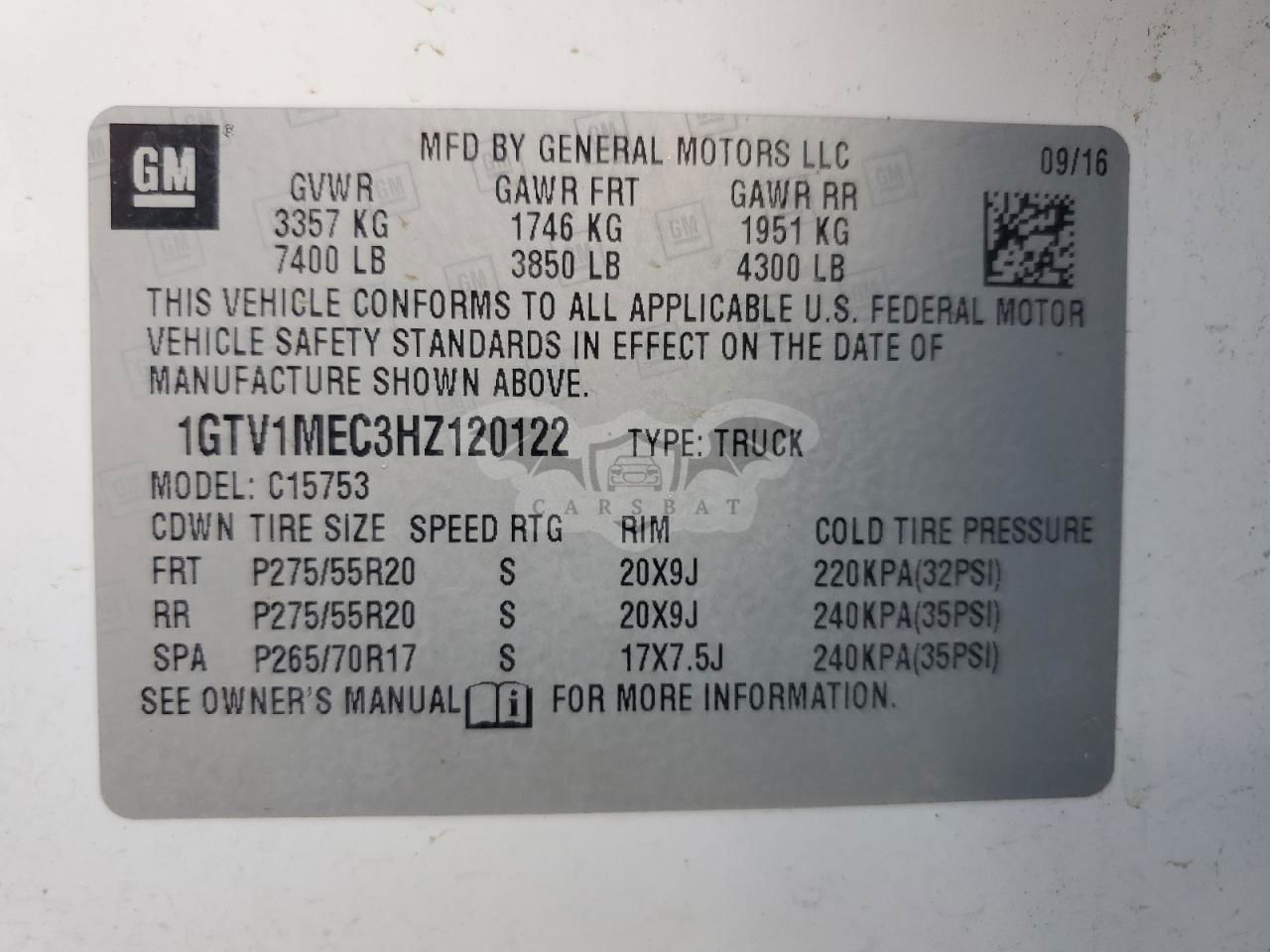 • VIN: 1GTV1MEC3HZ120122