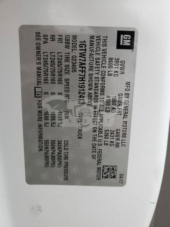 • VIN: 1GTW7AFF7H1912413