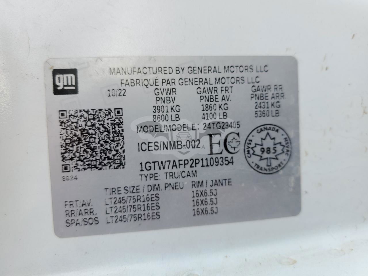 • VIN: 1GTW7AFP2P1109354
