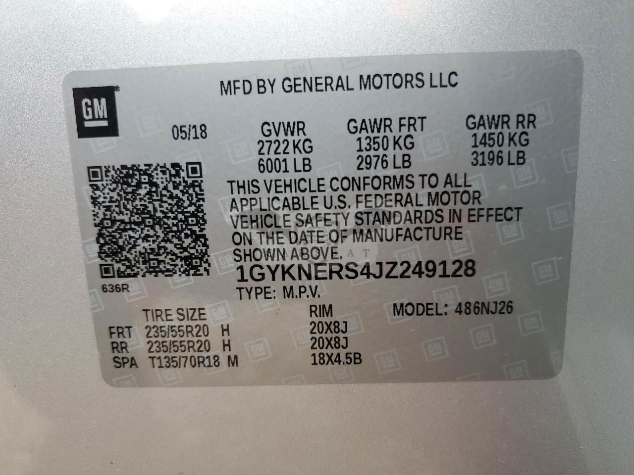 • VIN: 1GYKNERS4JZ249128