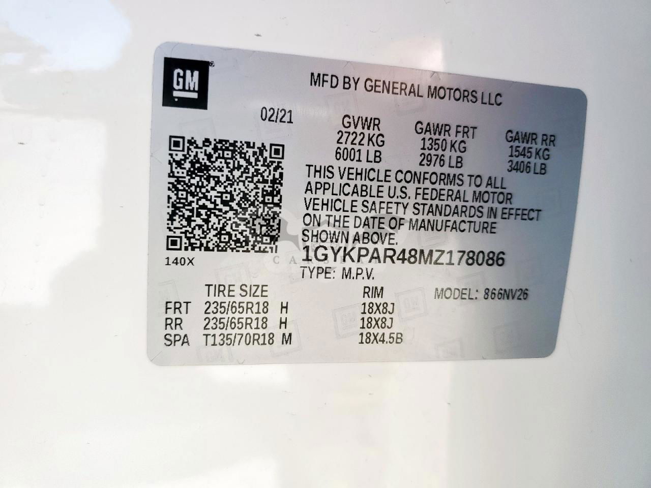 • VIN: 1GYKPAR48MZ178086
