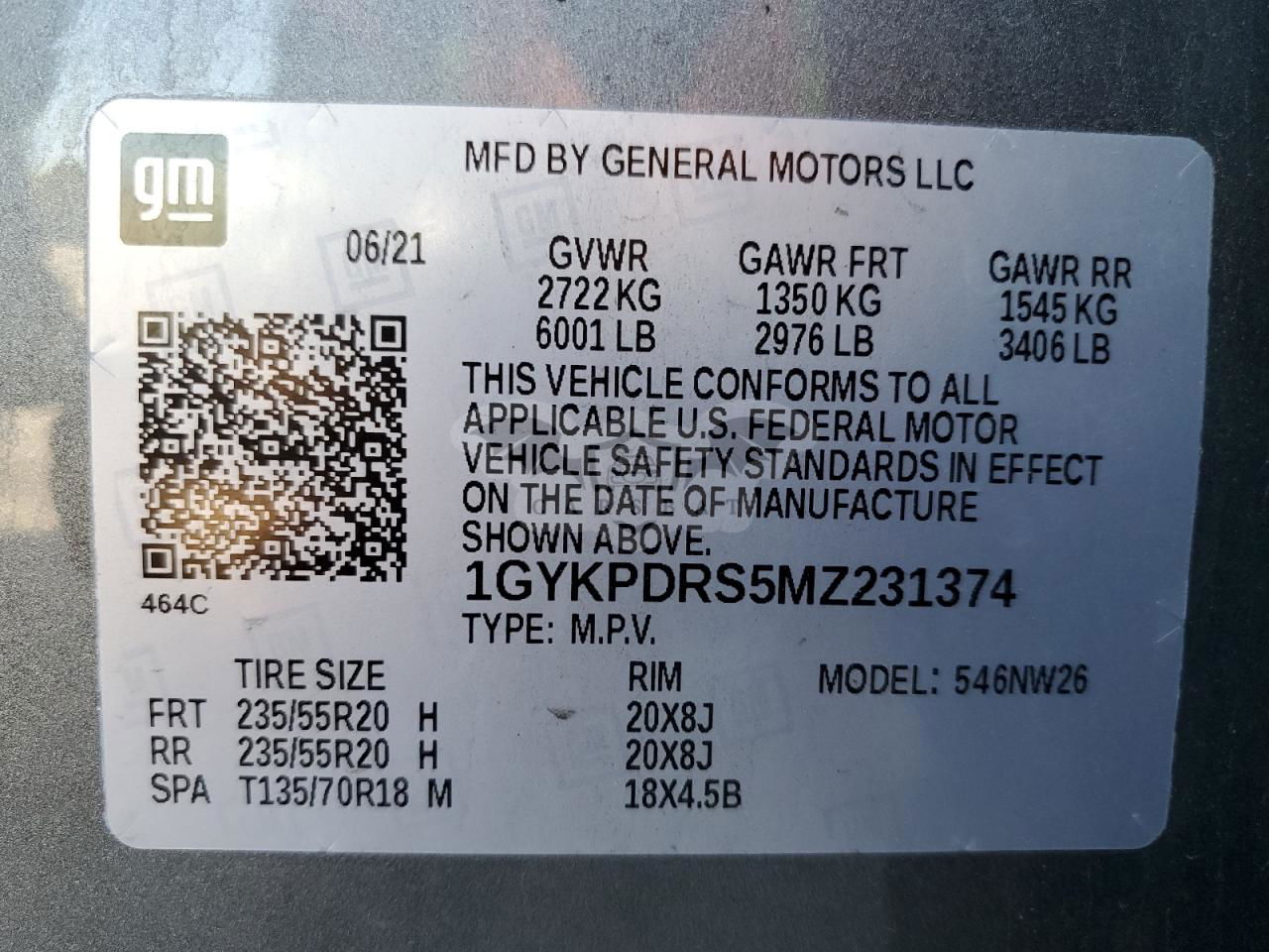 • VIN: 1GYKPDRS5MZ231374