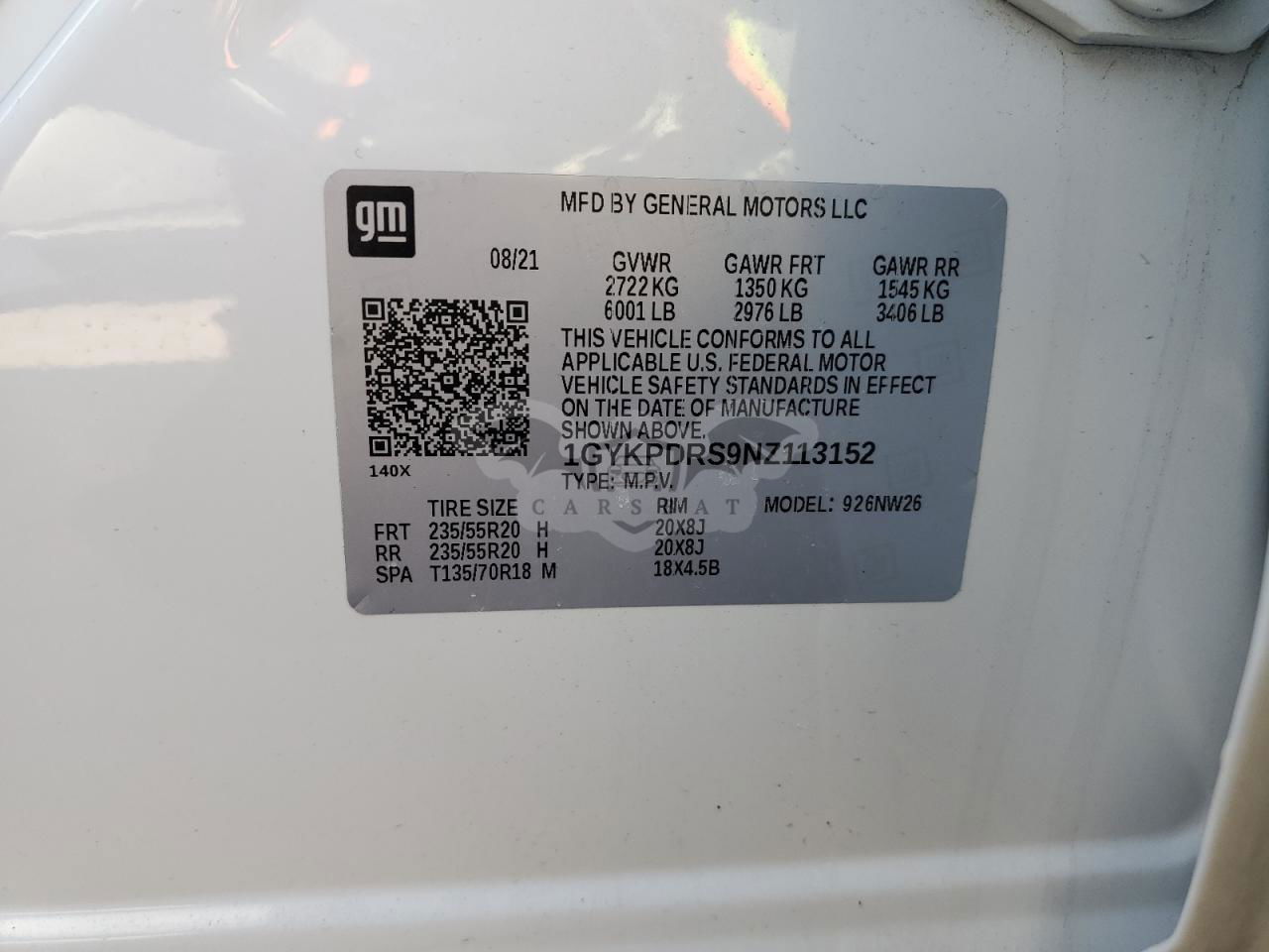 • VIN: 1GYKPDRS9NZ113152